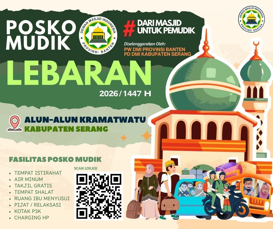SERANG – Perjalanan mudik yang panjang seringkali membuat para pemudik membutuhkan tempat singgah untuk beristirahat. Menjawab kebutuhan itu, Dewan Masjid Indonesia (DMI) menghadirkan Posko Mudik DMI 1447 Hijriah di Alun-Alun Kramatwatu, Kabupaten Serang.