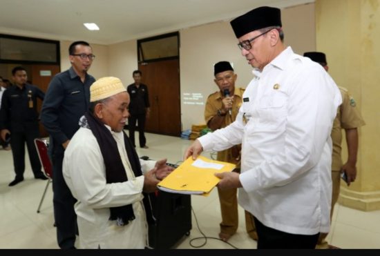 Foto Gubernur Banten Wahidin Halim saat sacara simbolis memberikan dana hibah untuk pondok pesantren dari Provinsi Banten tahun 2020 di Aula Masjid Raya alBantani KP3B, Curug Kota Serang (Selasa,18/2/2020), foto dari bantenprov.go.id